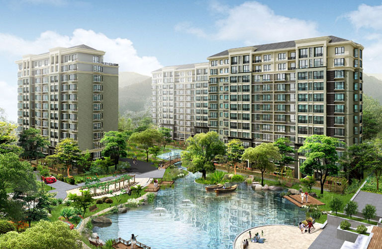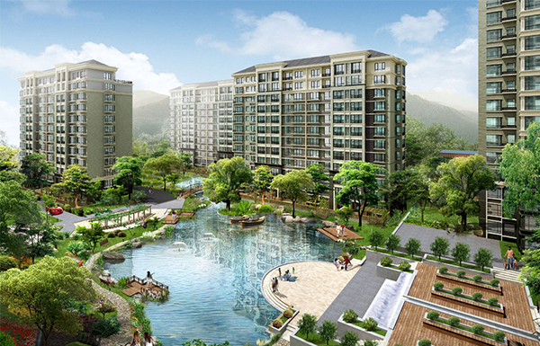 基于山地地貌,运用堆土成坡、汇泉成溪、铺地落差、植物配置等手段进行高差的创造和空间的转换,结合中国传统院落空间及欧洲叠景园林处理方法,演绎独具特色的台地叠景园林,并将4000㎡水系引入小区中,运用最先进的防渗自洁技术,保持水面清洁,营造舒适惬意的生态起居环境。